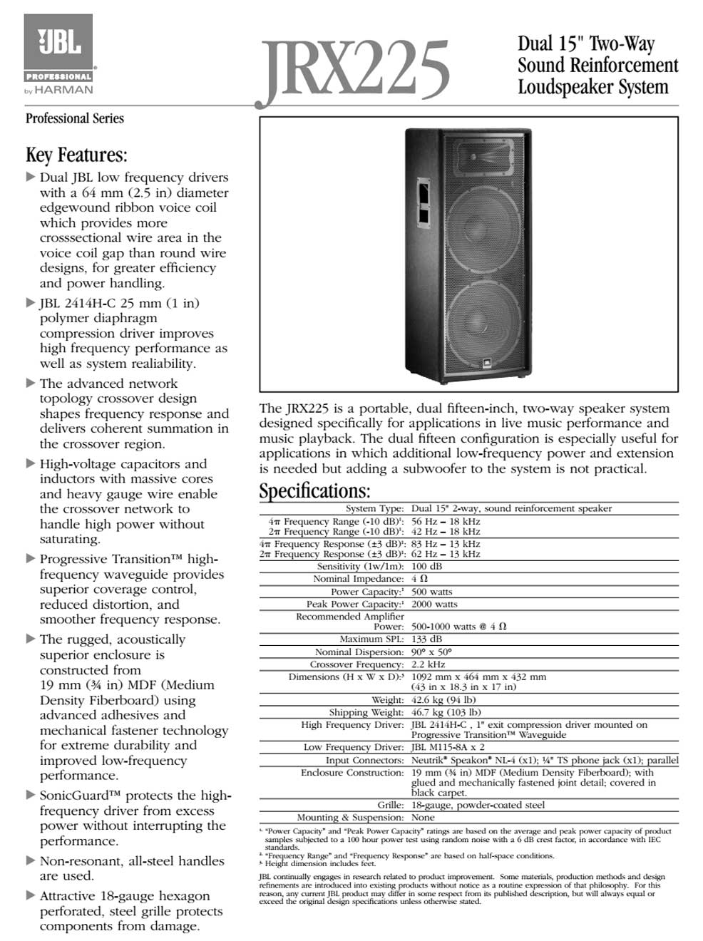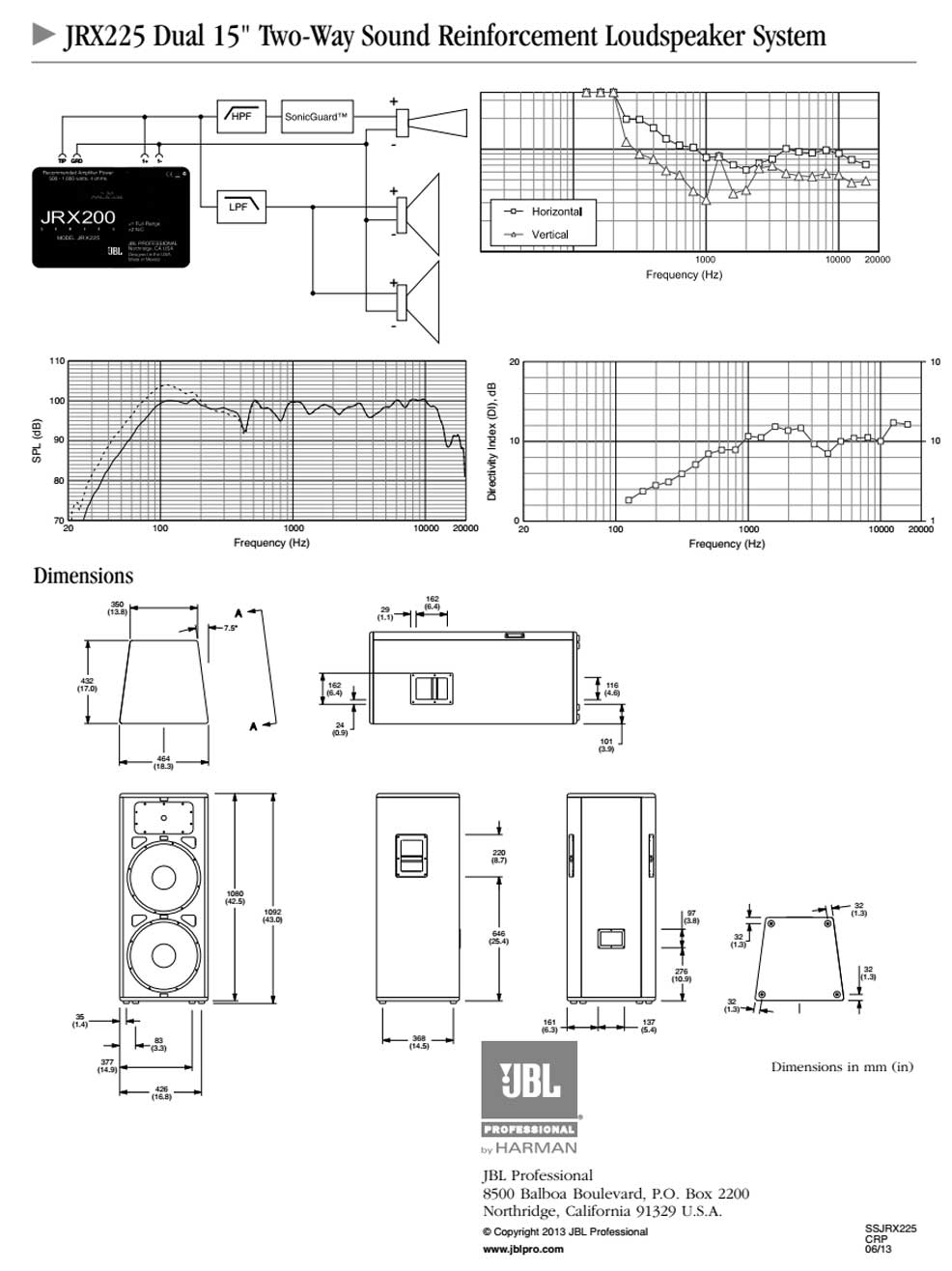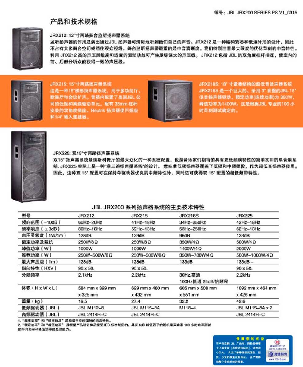 JRX200 使用的低音單元和壓縮驅動器金部由美國加洲JBL專業(yè)公司制造。