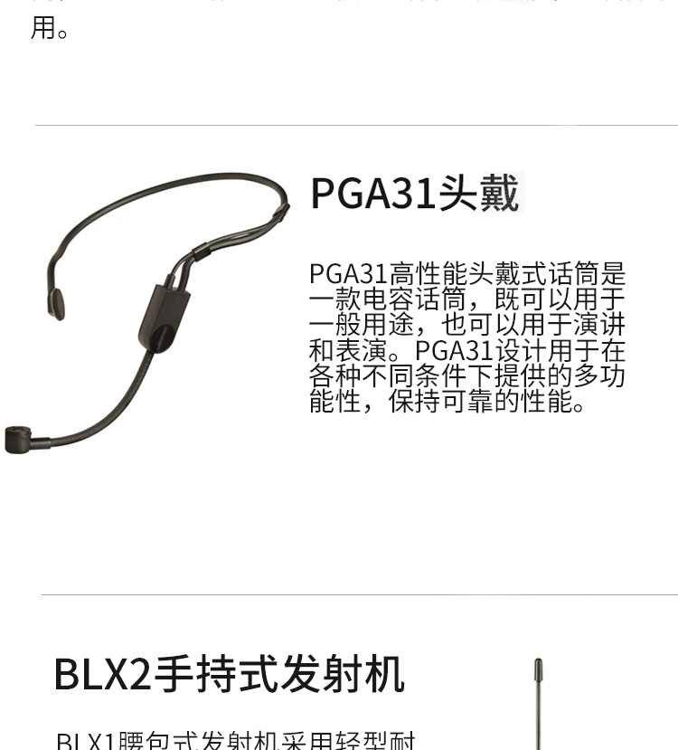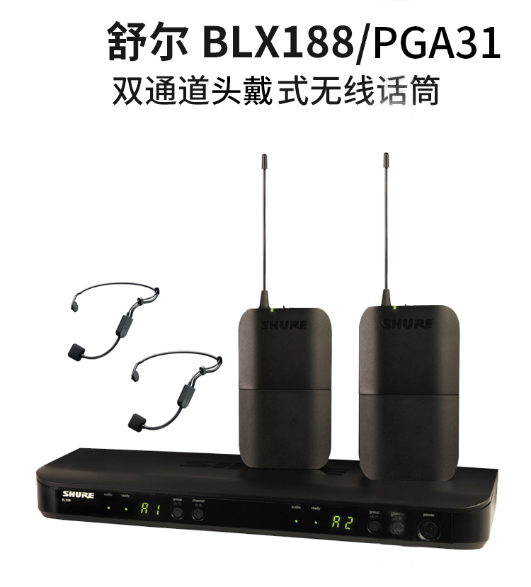 SHURE 舒爾BLX188/PGA31BLX188/CVL無線頭戴領夾話筒會議演講學校教學 BLX188/PGA31 雙頭戴