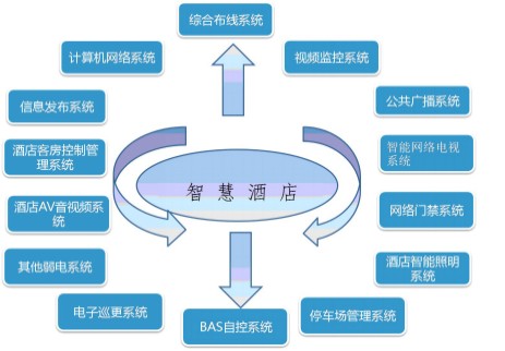 智慧酒店管理系統(tǒng)是綜合型的智能化集成系統(tǒng),系統(tǒng)涵蓋了綜合布線、計(jì)算機(jī)網(wǎng)絡(luò)、客房控制、數(shù)字電視、信息發(fā)布、視頻監(jiān)控、公共廣播、停車場(chǎng)管理、網(wǎng)絡(luò)門禁、樓宇自控等多種系統(tǒng)。